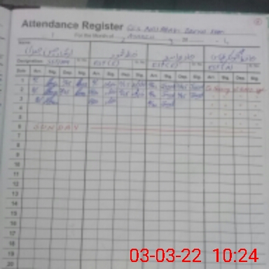 | CNIC | Full Name | Designation | R/C | Absence During Last Calender Month |