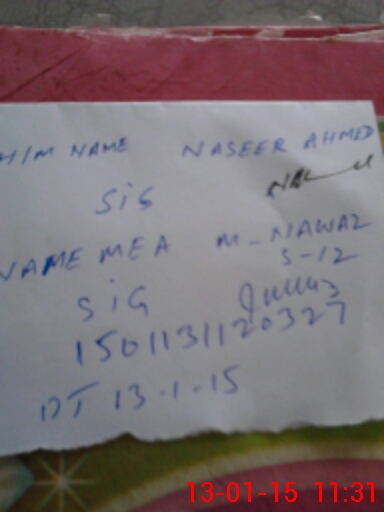 | Monitoring Date: 13-01-2015 | Start Time: 13-01-2015 11:00 AM | End Time: 13-01-2015 11:31 AM | Name of MEA: S-**** MO**** NA**** AK**** (R**** | |
