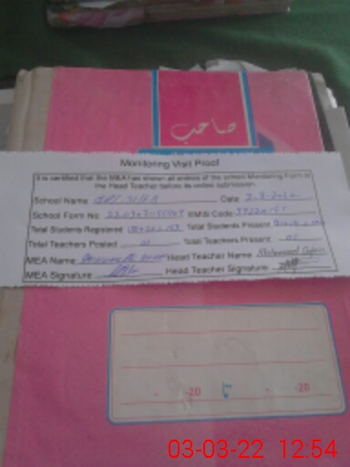 | Certified that this School was Inspected by the Undersigned MEA/DMO Today and the Information Stated Above is as Per Record. | |||||