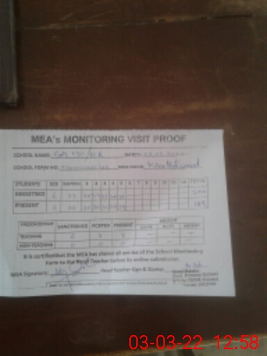 | Attendance Register | Head Teacher | MEA with School | Visit Proof |