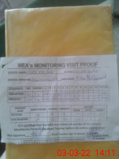 | Certified that this School was Inspected by the Undersigned MEA/DMO Today and the Information Stated Above is as Per Record. | |||||