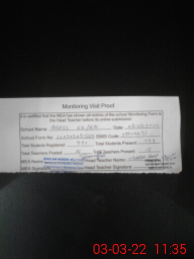 | Certified that this School was Inspected by the Undersigned MEA/DMO Today and the Information Stated Above is as Per Record. | |||||