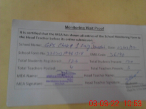 | EMIS Code: 36130247 | Name of School: GPS CHAK NO. 1 FAIZ SOUTH | |||