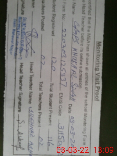 | EMIS Code: 31150323 | Name of School: GGPS KHUSHAL SINGH | |||