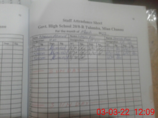 | EMIS Code: 36430032 | Name of School: GHS 20/8-R, TULAMBA | |||