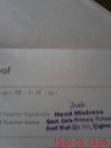 | Name: FA**** AS**** Designation: (School Headmaster's/Headmistress's) PST Phone/Cell Number: 03**** |