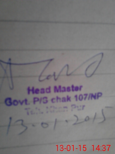 | EMIS Code: 31310109 | Name of School: GPS CHAK NO 107 NP (After Noon) | |||