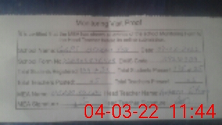 | Certified that this School was Inspected by the Undersigned MEA/DMO Today and the Information Stated Above is as Per Record. | |||||