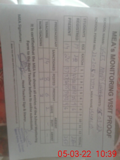 | Certified that this School was Inspected by the Undersigned MEA/DMO Today and the Information Stated Above is as Per Record. | |||||