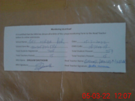 | Name: Gh**** Sa**** An**** Designation: (School Headmaster's/Headmistress's) SST Science Phone/Cell Number: 03**** |
