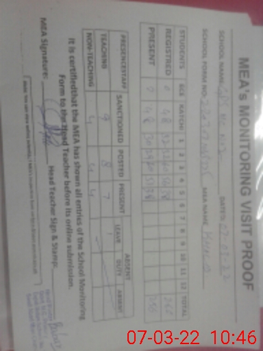 | Monitoring Date: 07-03-2022 | Start Time: 07-03-2022 09:25 AM | End Time: 07-03-2022 10:50 AM | Name of MEA: Kh**** Me**** | |
