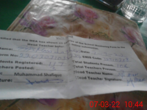 | Name: AR**** AK**** Designation: (School Headmaster's/Headmistress's) ESE (SC/MATH)) Phone/Cell Number: 03**** |