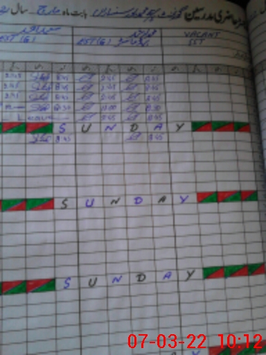 | CNIC | Full Name | Designation | R/C | Absence During Last Calender Month |