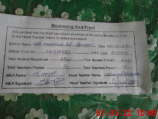 | Certified that this School was Inspected by the Undersigned MEA/DMO Today and the Information Stated Above is as Per Record. | |||||