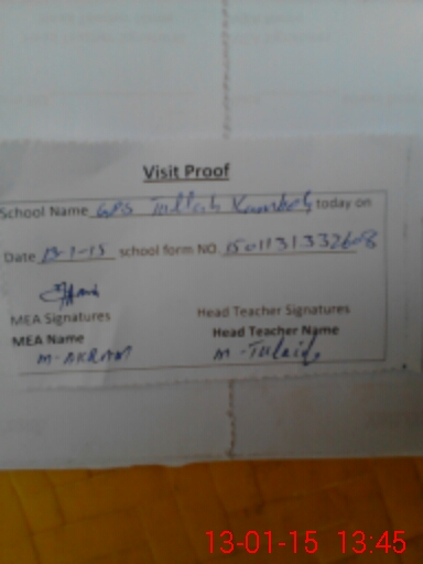 | Attendance Register | Head Teacher | MEA with School | Visit Proof |