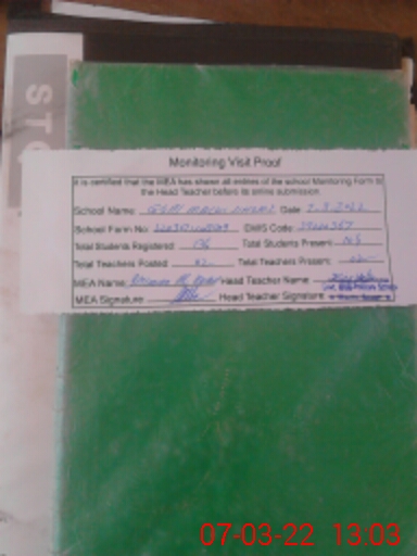 | Attendance Register | Head Teacher | MEA with School | Visit Proof |