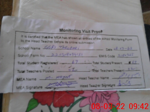 | Attendance Register | Head Teacher | MEA with School | Visit Proof |