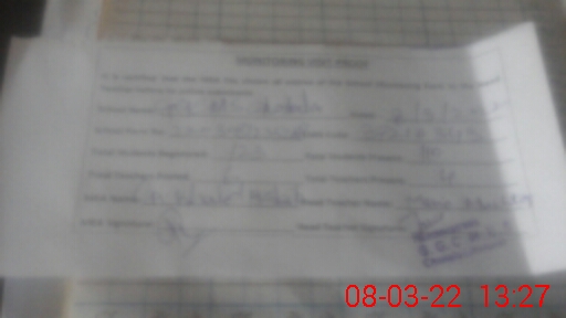 | Monitoring Date: 08-03-2022 | Start Time: 08-03-2022 01:25 PM | End Time: 08-03-2022 01:42 PM | Name of MEA: Kh**** ha**** | |