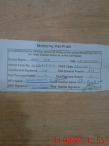 | EMIS Code: 39220013 | Name of School: GHS 1-EB | |||
