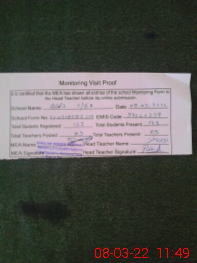 | Attendance Register | Head Teacher | MEA with School | Visit Proof |