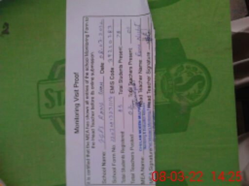 | Attendance Register | Head Teacher | MEA with School | Visit Proof |