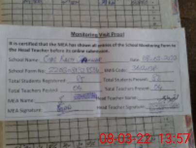 | Certified that this School was Inspected by the Undersigned MEA/DMO Today and the Information Stated Above is as Per Record. | |||||