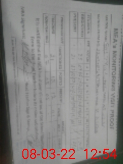 | Monitoring Date: 08-03-2022 | Start Time: 08-03-2022 12:38 PM | End Time: 08-03-2022 12:55 PM | Name of MEA: MU**** AS**** | |
