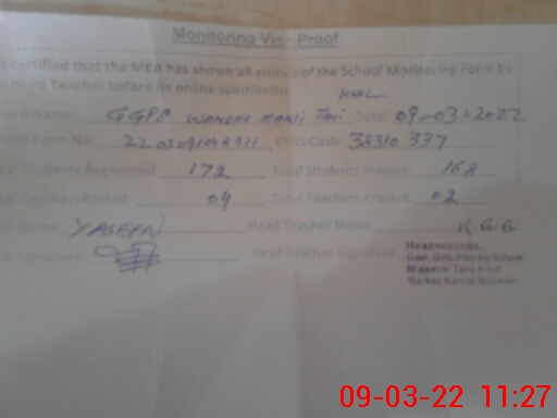 | EMIS Code: 38310337 | Name of School: GGPS WANDHA MANJI TANI KHEL | |||