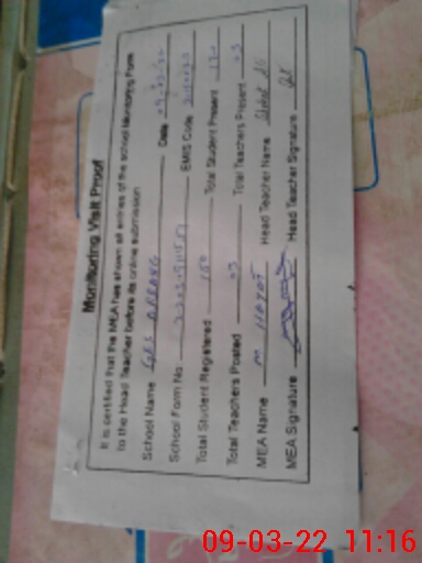 | Attendance Register | Head Teacher | MEA with School | Visit Proof |