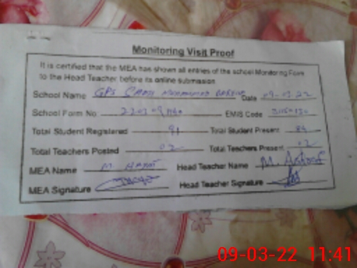 | Certified that this School was Inspected by the Undersigned MEA/DMO Today and the Information Stated Above is as Per Record. | |||||