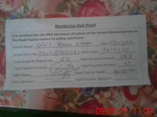 | EMIS Code: 36130110 | Name of School: GGES RANA WAHIN | |||