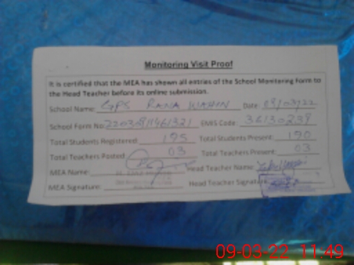 | EMIS Code: 36130239 | Name of School: GPS RANA WAHIN | |||