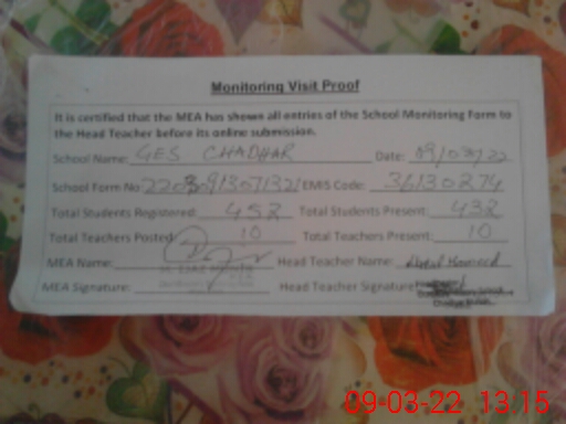 | EMIS Code: 36130274 | Name of School: GES CHADHAR | |||