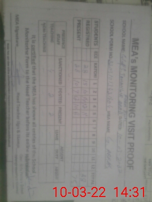 | Attendance Register | Head Teacher | MEA with School | Visit Proof |