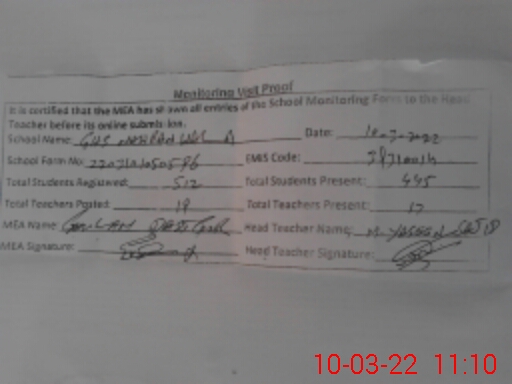 | Certified that this School was Inspected by the Undersigned MEA/DMO Today and the Information Stated Above is as Per Record. | |||||