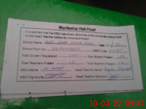 | Attendance Register | Head Teacher | MEA with School | Visit Proof |