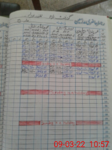 | CNIC | Full Name | Designation | R/C | Absence During Last Calender Month |