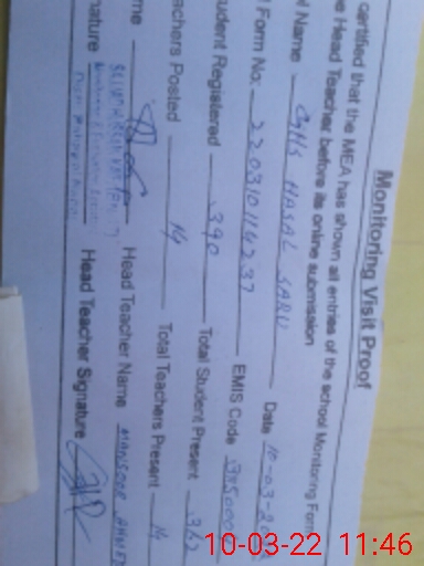 | Certified that this School was Inspected by the Undersigned MEA/DMO Today and the Information Stated Above is as Per Record. | |||||