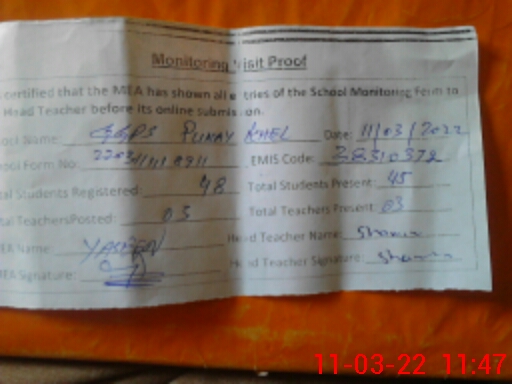 | EMIS Code: 38310372 | Name of School: GGPS PUNJAY KHEL | |||