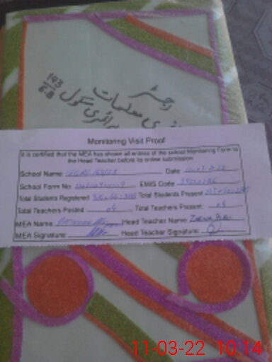 | Certified that this School was Inspected by the Undersigned MEA/DMO Today and the Information Stated Above is as Per Record. | |||||
