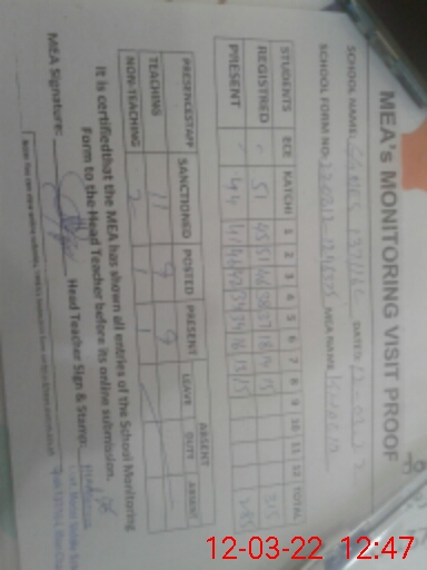 | Attendance Register | Head Teacher | MEA with School | Visit Proof |