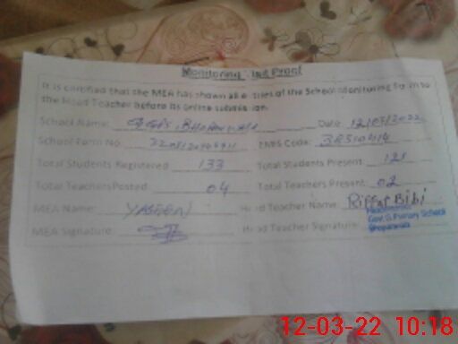 | EMIS Code: 38310414 | Name of School: GGPS BHOPAN WALA | |||