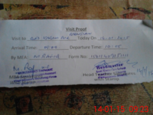 | Attendance Register | Head Teacher | MEA with School | Visit Proof |