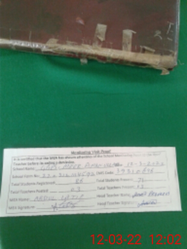 | Certified that this School was Inspected by the Undersigned MEA/DMO Today and the Information Stated Above is as Per Record. | |||||