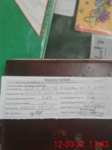 | Certified that this School was Inspected by the Undersigned MEA/DMO Today and the Information Stated Above is as Per Record. | |||||
