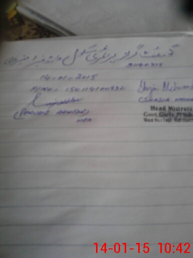 | Name: SH**** ME**** Designation: (School Headmaster's/Headmistress's) PTC Phone/Cell Number: 03**** |