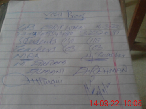 | Attendance Register | Head Teacher | MEA with School | Visit Proof |