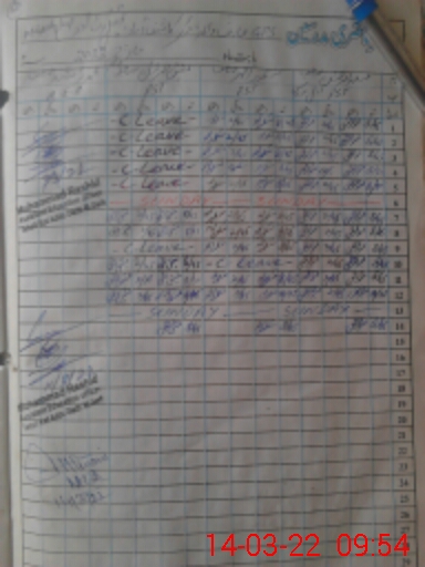 | CNIC | Full Name | Designation | R/C | Absence During Last Calender Month |