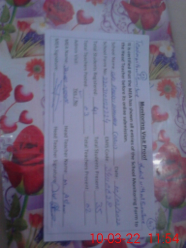| Certified that this School was Inspected by the Undersigned MEA/DMO Today and the Information Stated Above is as Per Record. | |||||