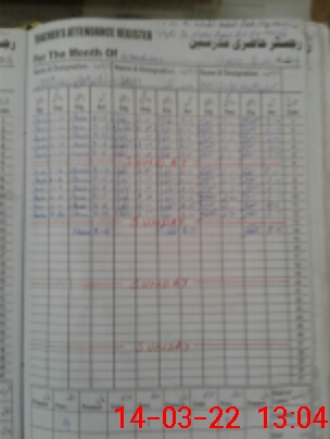 | CNIC | Full Name | Designation | R/C | Absence During Last Calender Month |